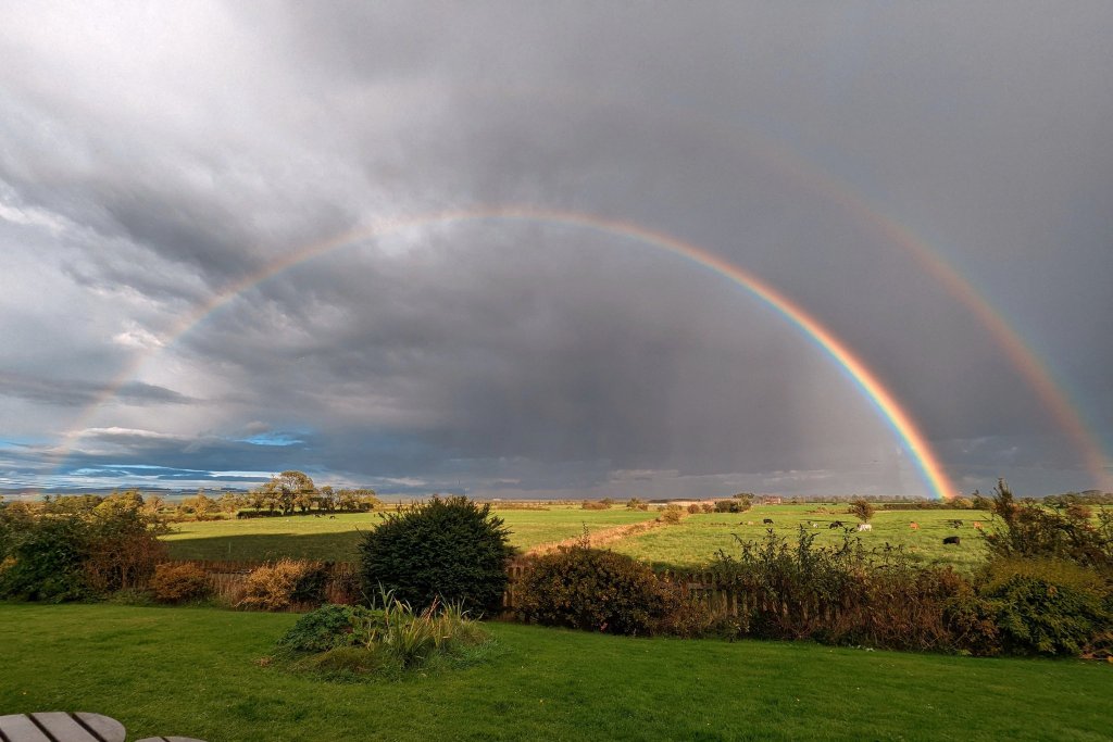 As I looked towards where he was pointing, I noticed that the three women stopped immediately, took out their phones and turned to the left, and started taking photos or perhaps video of what was a very beautiful, soft rainbow arching across the grey sky and the dreary terminal building. None of them spoke, and this brief episode seemed quite natural and relaxed. When I reached the other side of the crossings, I turned round and they were still there, gathered in a companiable huddle, looking at the rainbow.